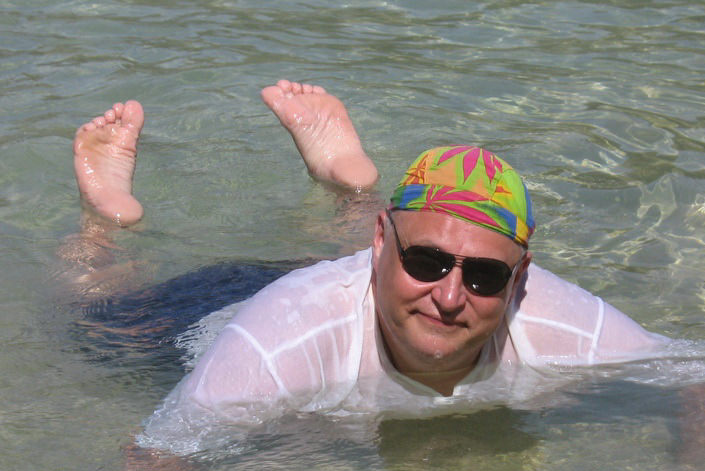 12.          Имеют место быть в воде медузы и какой-то кусачий планктон, появляется все это богатство в воде непредсказуемо. Если плавать без гидрокостюма, то планктон пощипывает, ну, а медузы разные бывают. И на box jelly fish тоже теоретически в этих водах нарваться можно (редко, но бывали и практические случаи). Если я плыву далеко, то в лайкровом костюме, перчатках и шлеме, медуз лайкра  прекрасно держит.