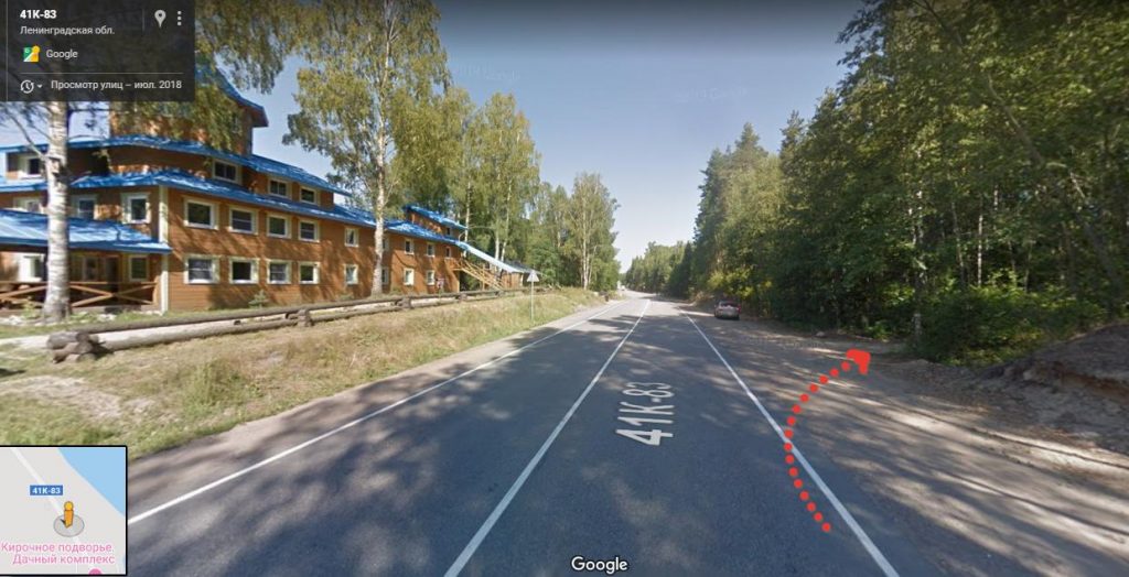 Проехав 19 км, видите синие крыши Кирочного подворья слева.Вам, повернуть направо, по стрелке. Через 20 метров вы на месте, у озера.